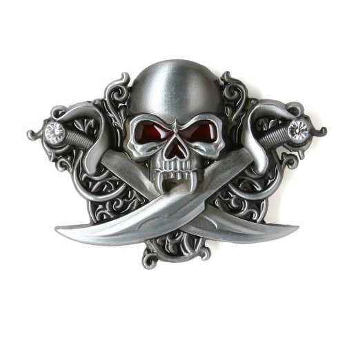 Jeweled Skull with Crossed Swords Belt Buckle Overviews